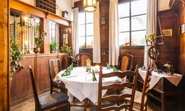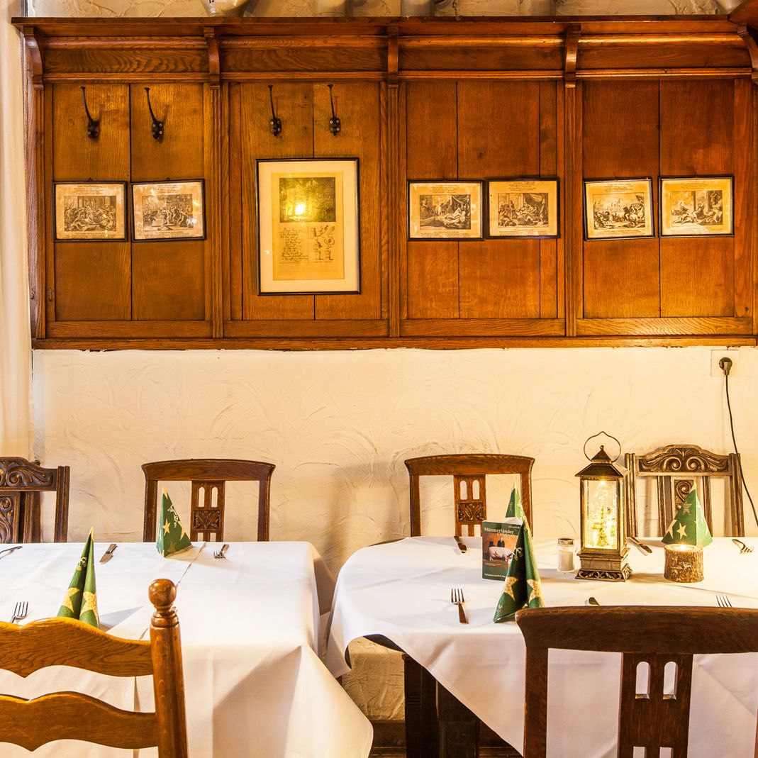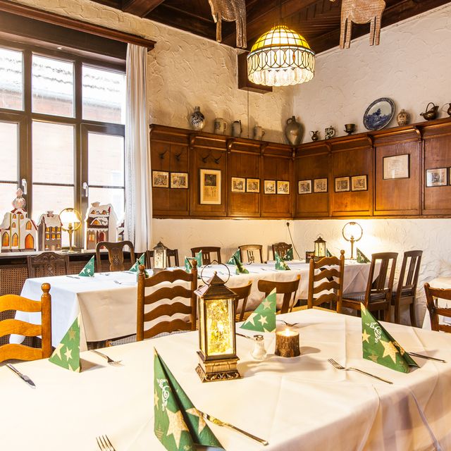 Sollten die drei kleinen Gasträume einmal nicht ausreichen, empfehlen wir unser Stammhaus "Zum neuen Herd" mit großzügigen Räumlichkeiten, Gartenterrasse, Kegelbahn und einem exquisiten Partyservice.