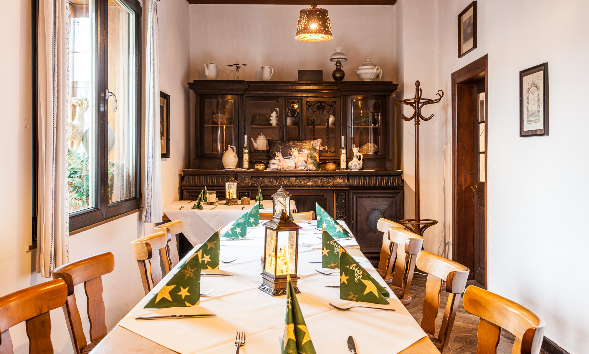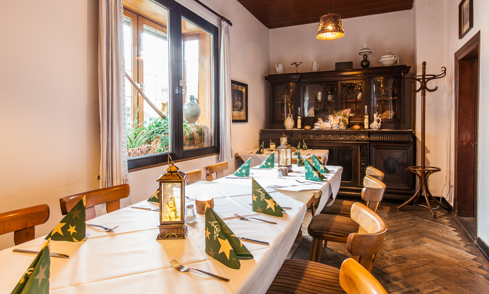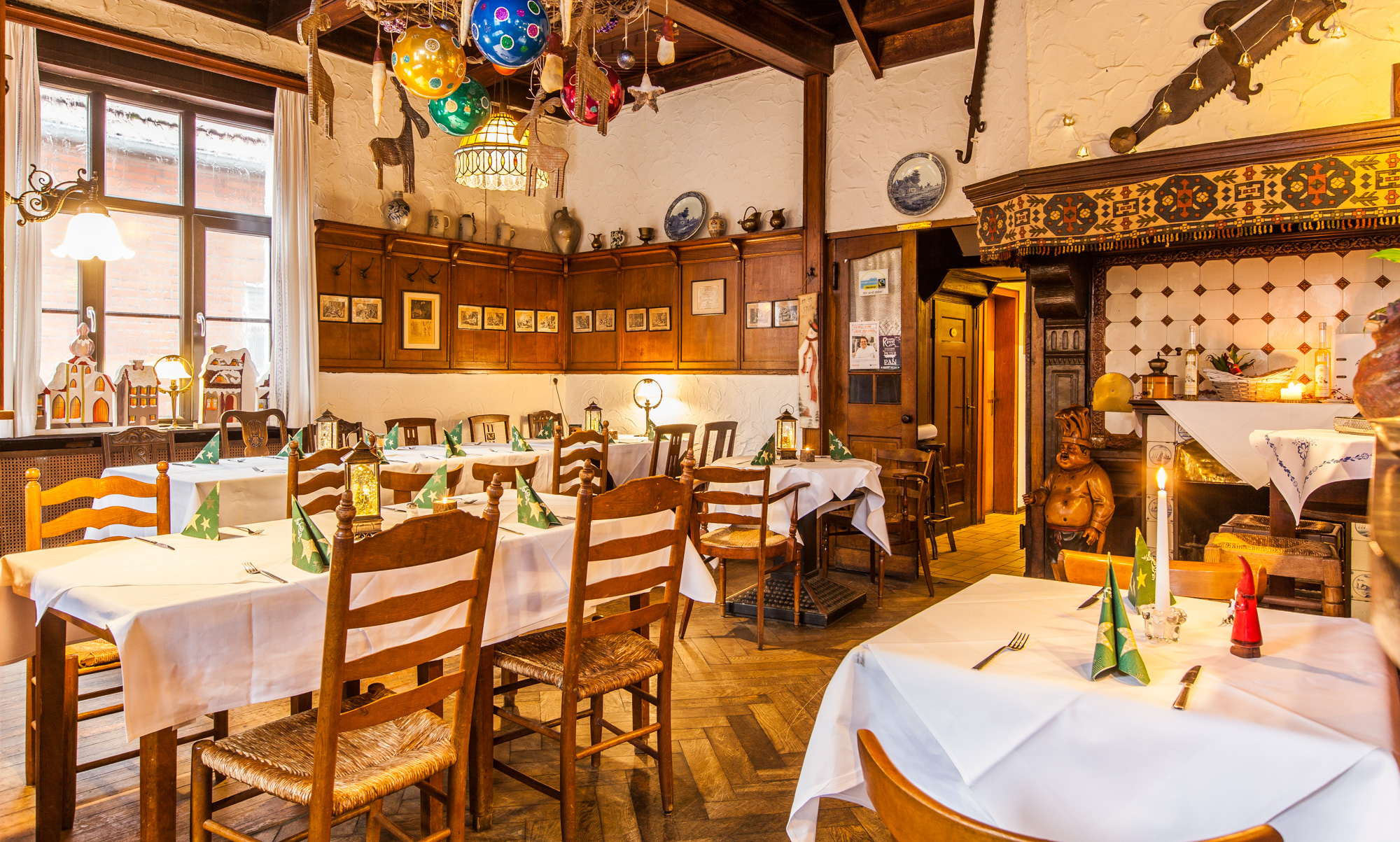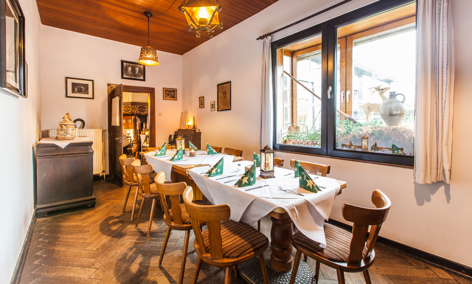 Sollten die drei kleinen Gasträume einmal nicht ausreichen, empfehlen wir unser Stammhaus "Zum neuen Herd" mit großzügigen Räumlichkeiten, Gartenterrasse, Kegelbahn und einem exquisiten Partyservice.